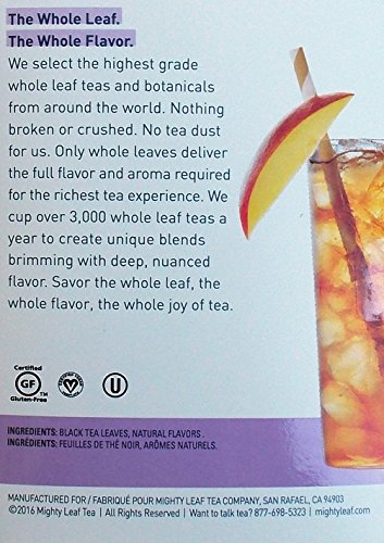 -. Title : Mighty Leaf Iced Tea Pitcher Bag Flavored Teas 2 Flavor Variety Bundle; (1) Ginger Peach Iced Tea, and (1) Tropical Passion Iced Tea, 1.48 Oz. Ea.