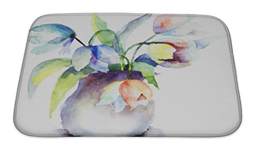 Gear New No Slip Microfiber Memory Foam Beautiful Blue Tulips Flowers Bath Rug Mat, 24" X 17"