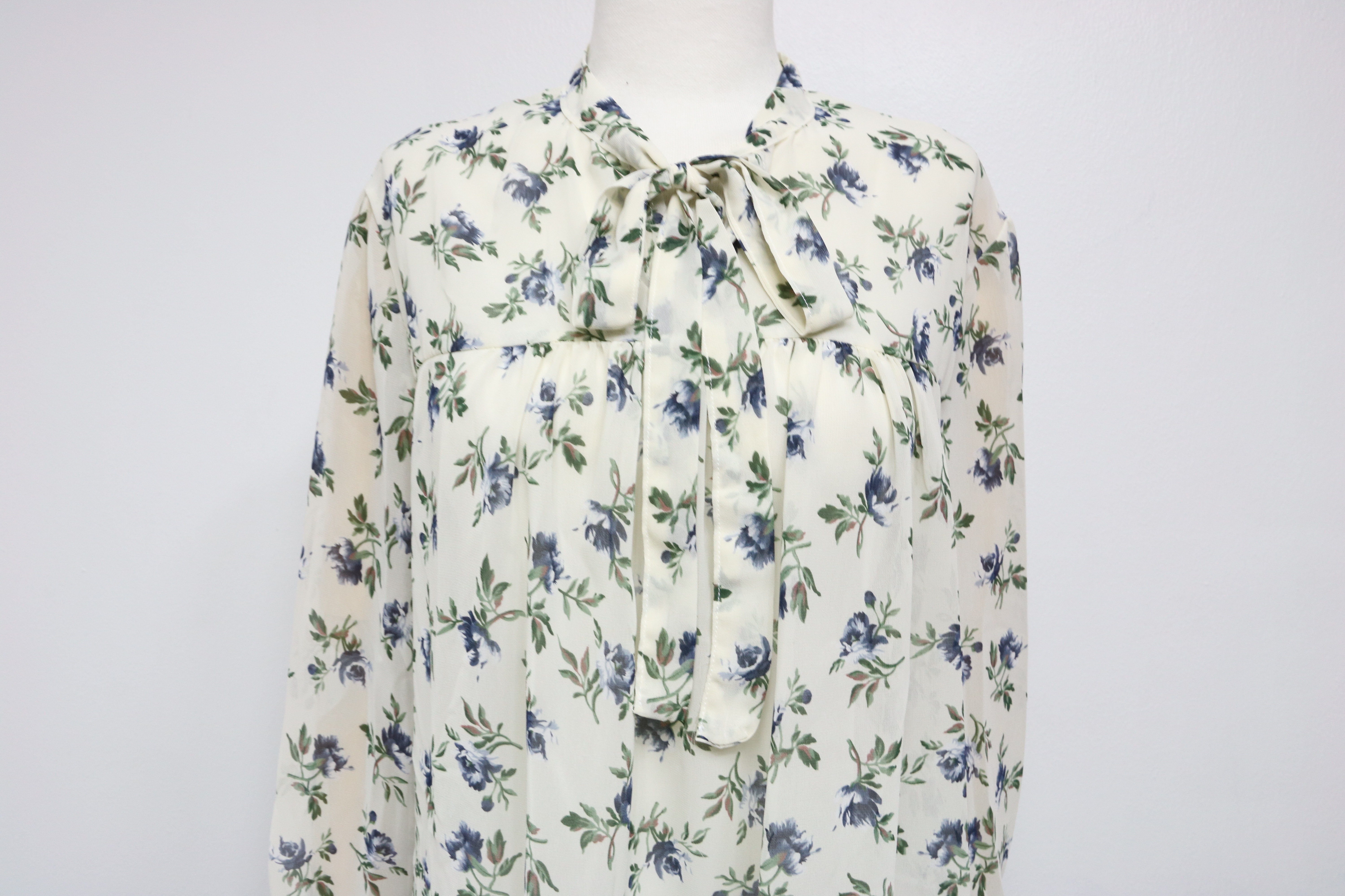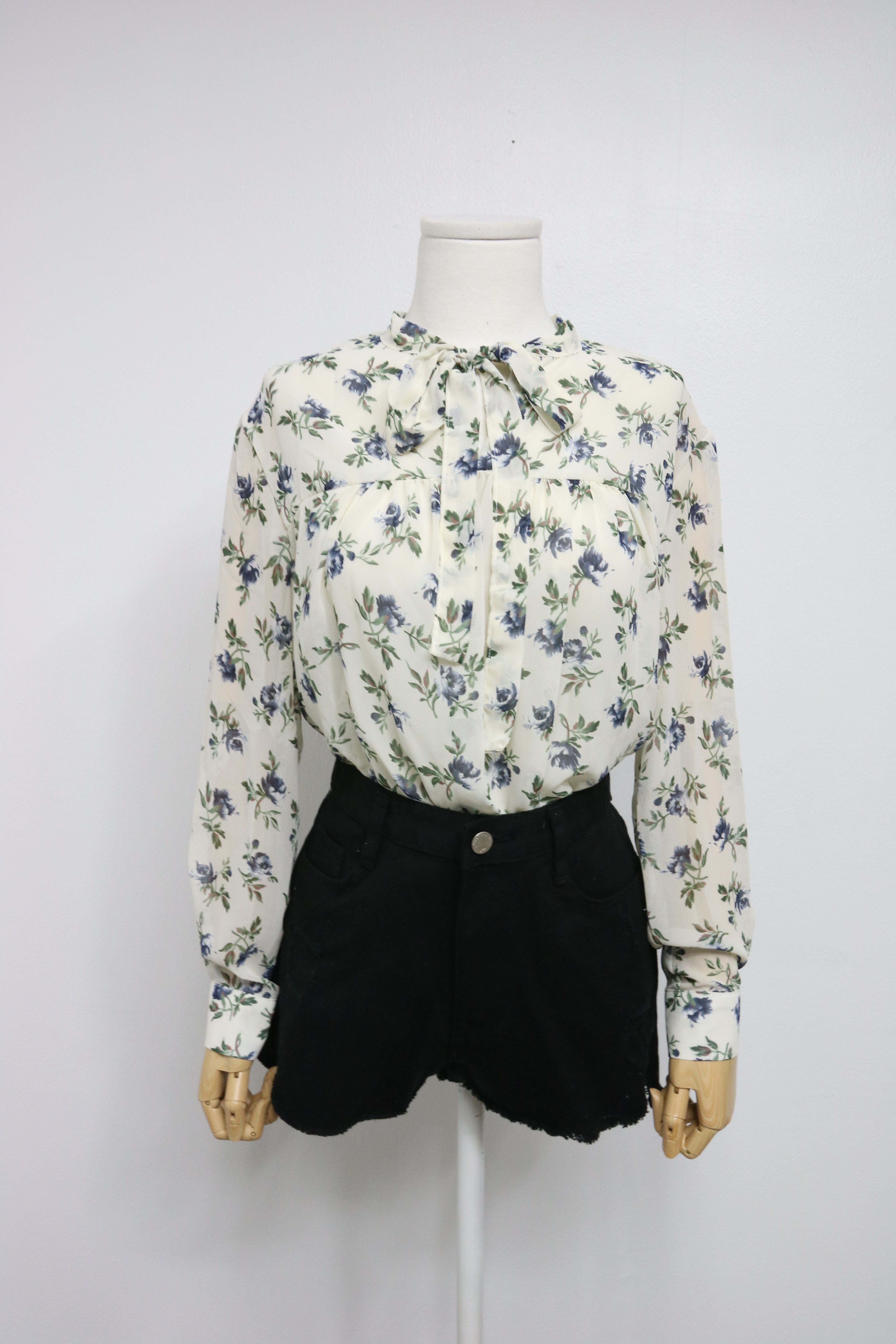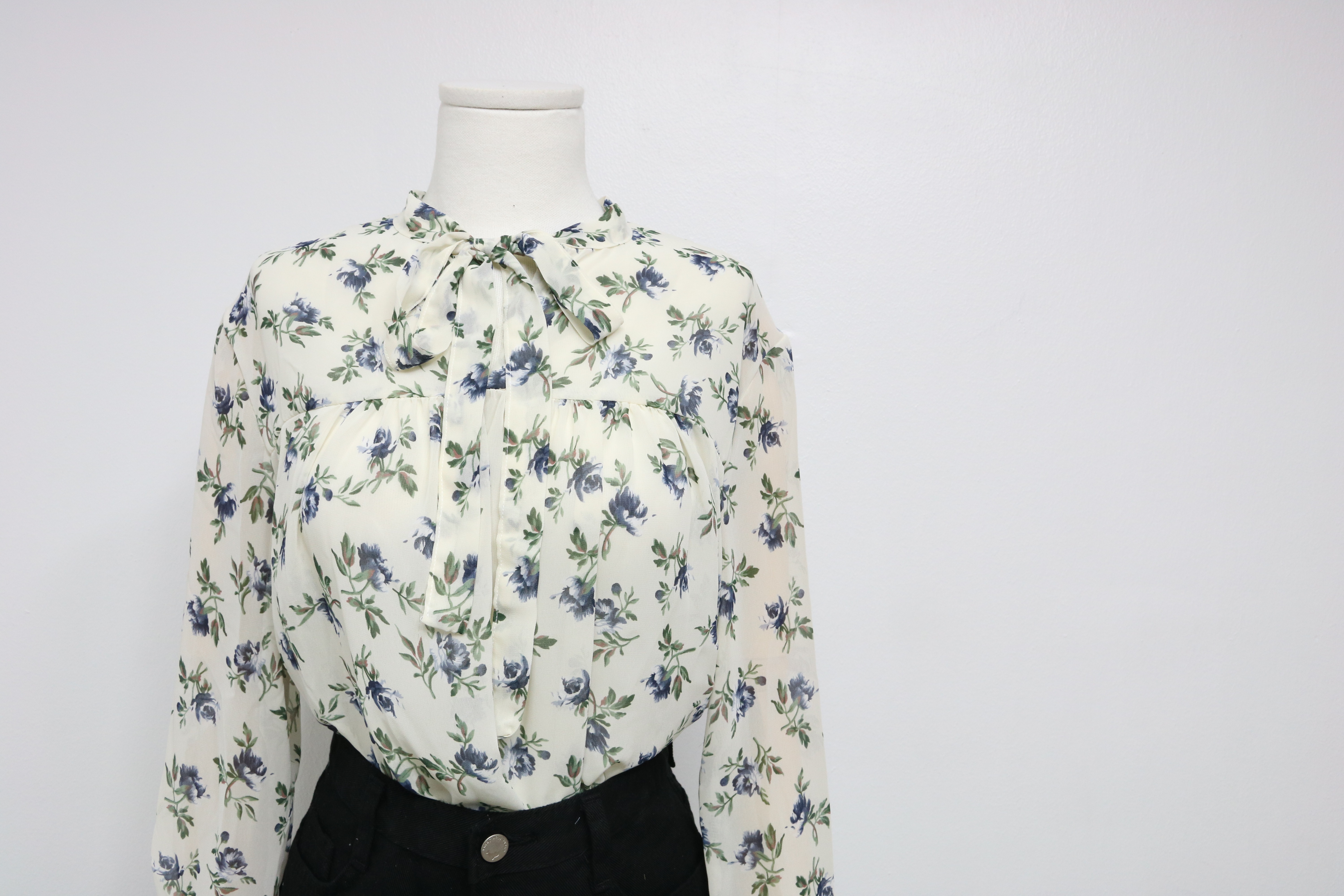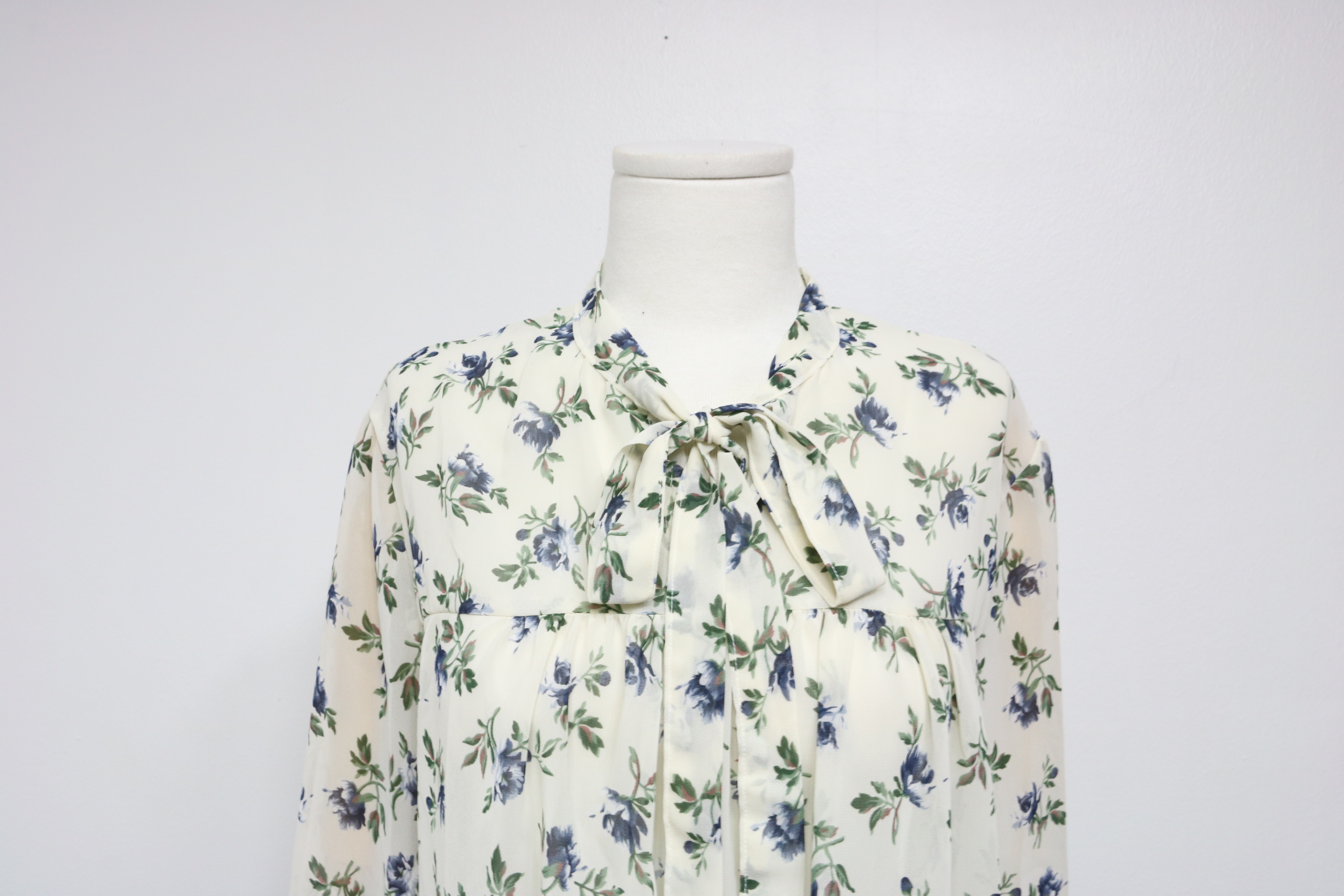 Bronze Jiri Jiri Flower Flowery Blouse Ribbon Long Sleeve Ruz-pit Ruffle Rider