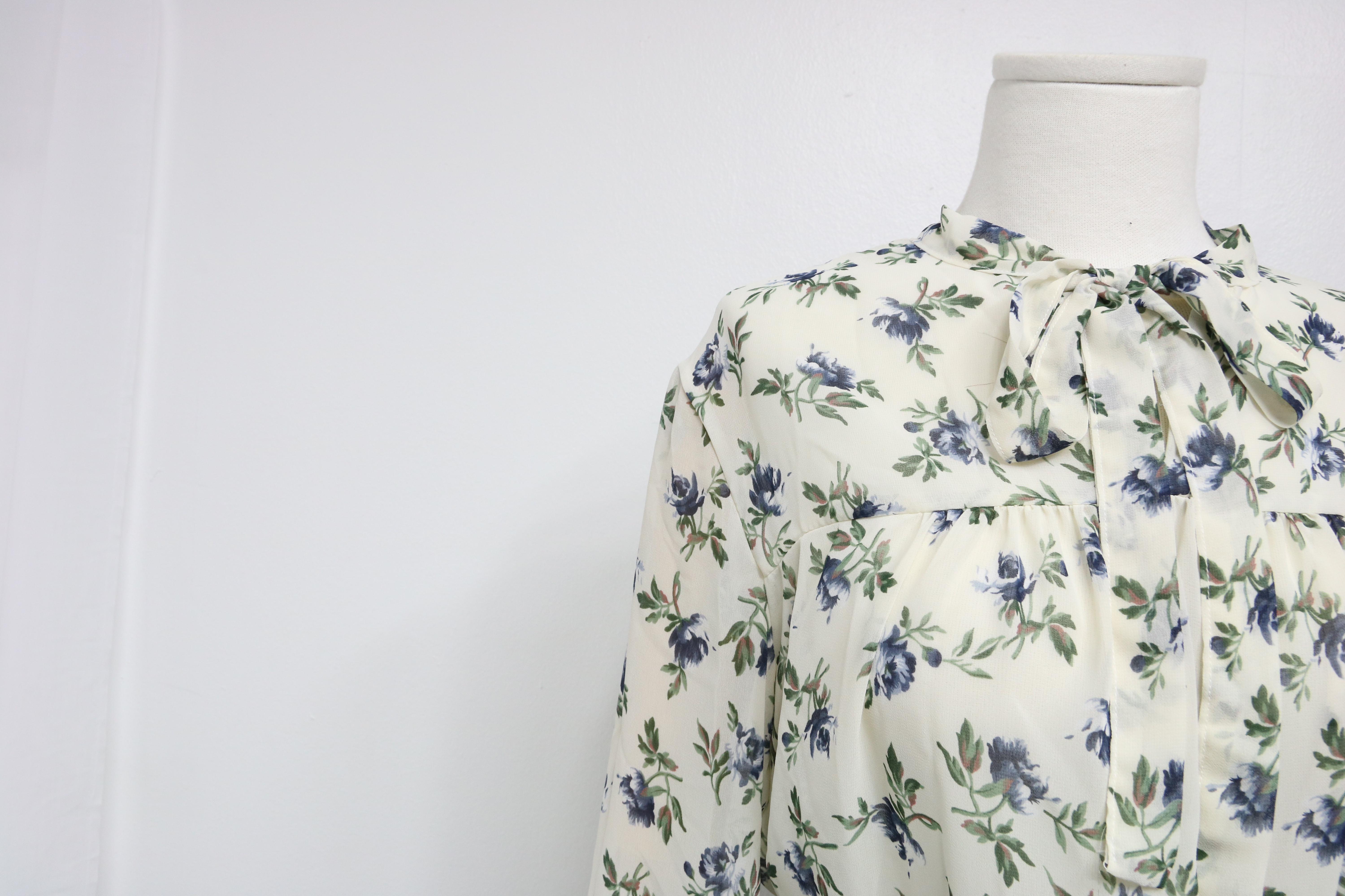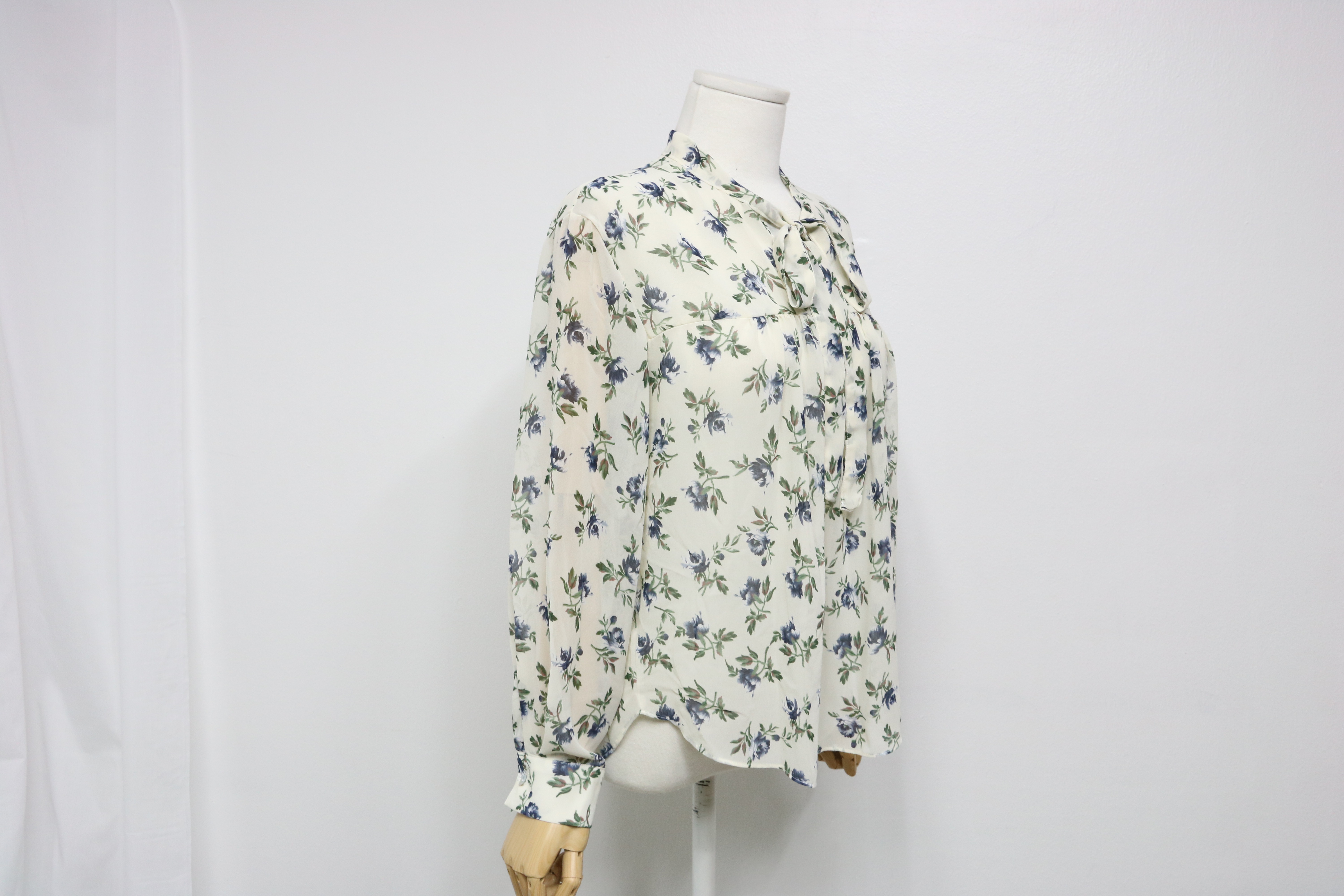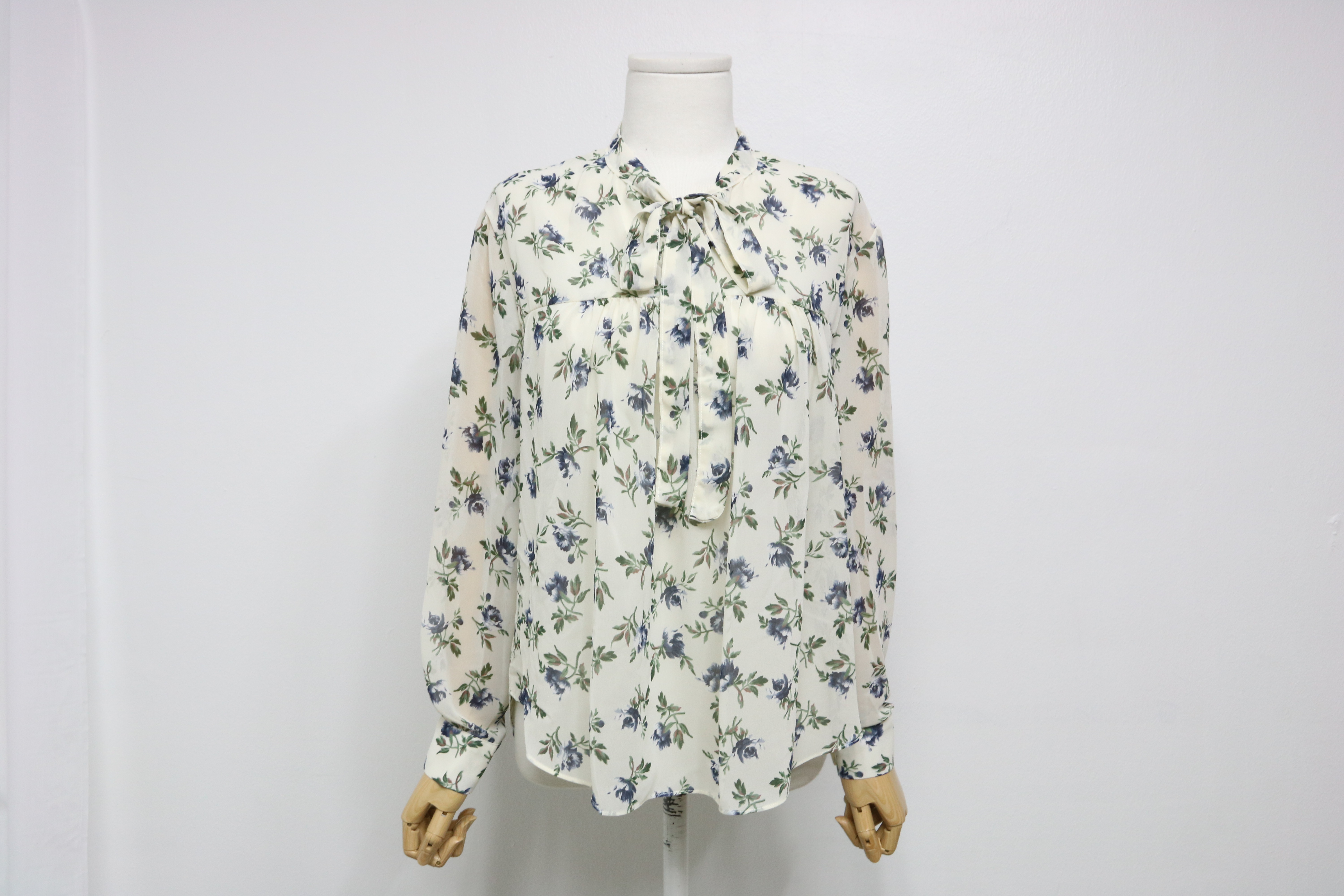 Bronze Jiri Jiri Flower Flowery Blouse Ribbon Long Sleeve Ruz-pit Ruffle Rider