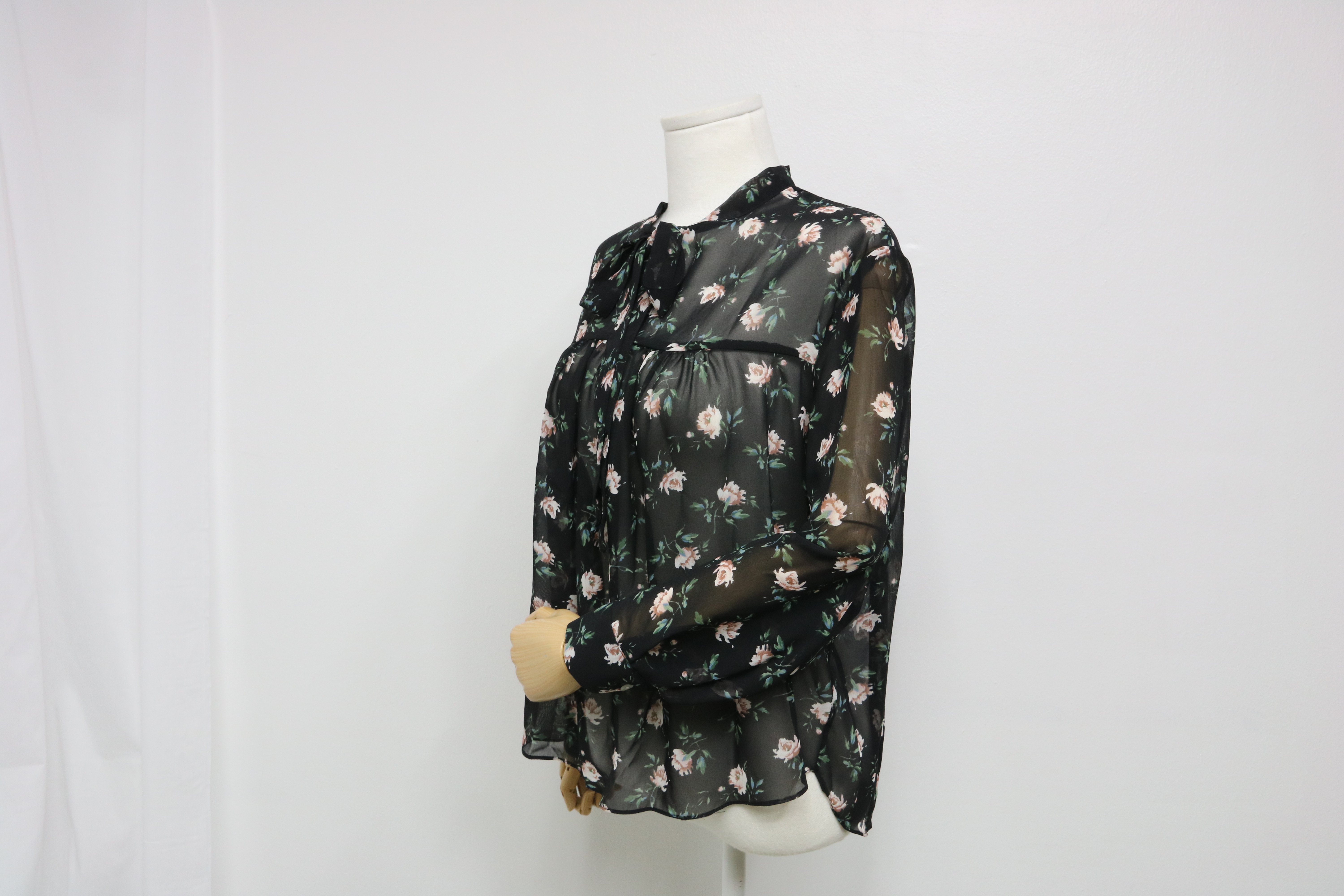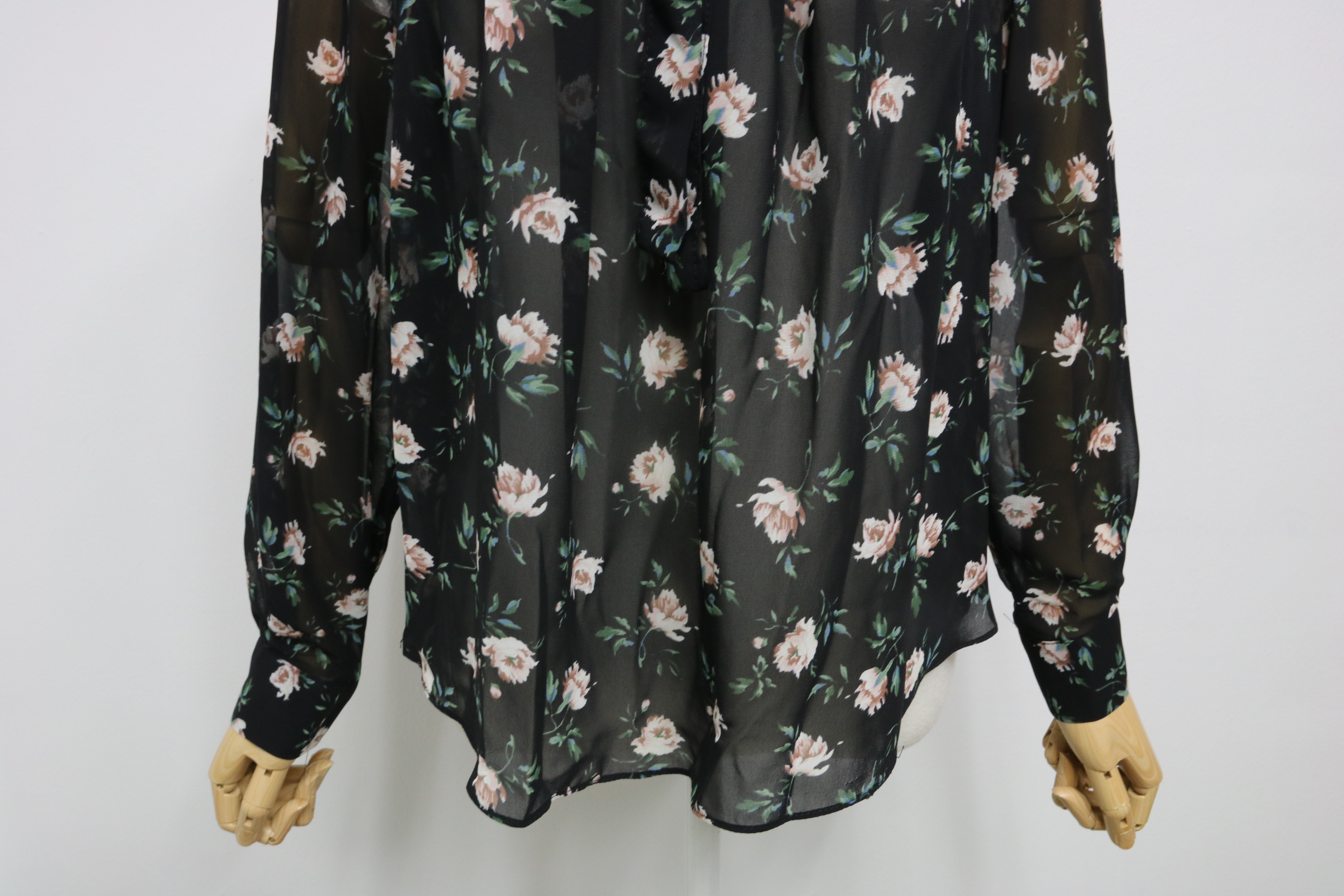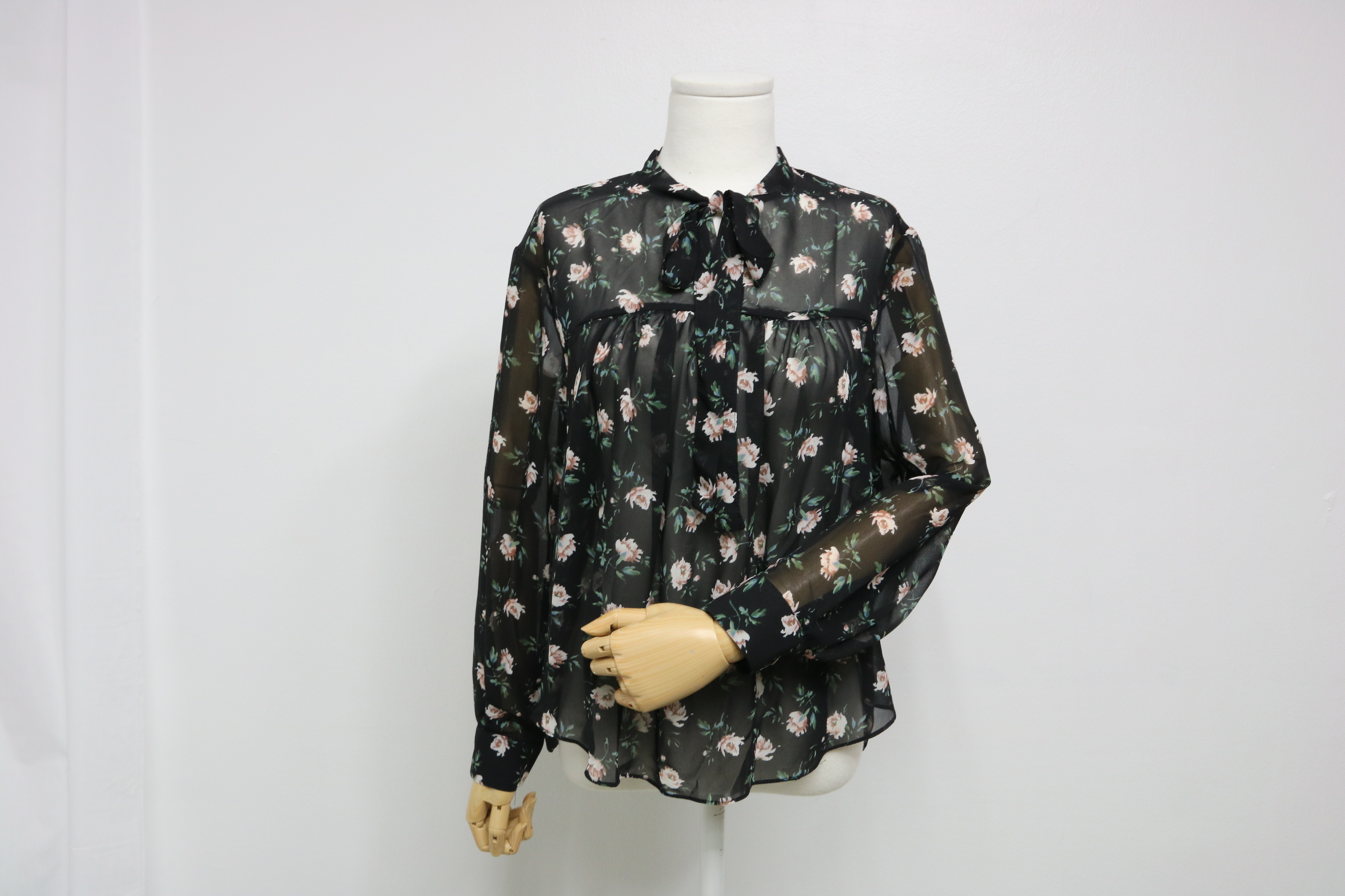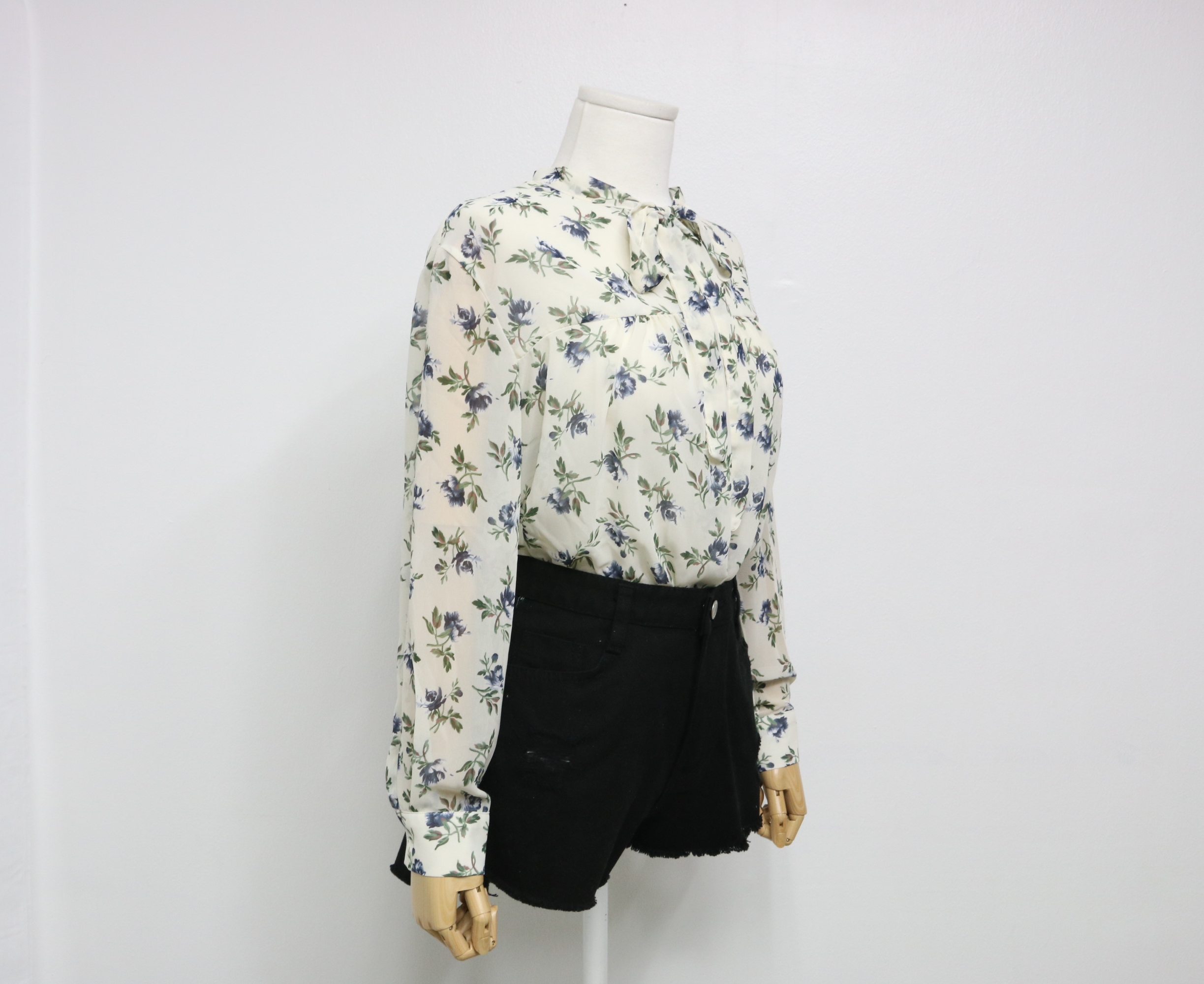 Bronze Jiri Jiri Flower Flowery Blouse Ribbon Long Sleeve Ruz-pit Ruffle Rider
