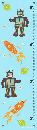 Oopsy Daisy Growth Charts Robots and Rockets Aqua by Finny and Zook, 12 by 42-Inch