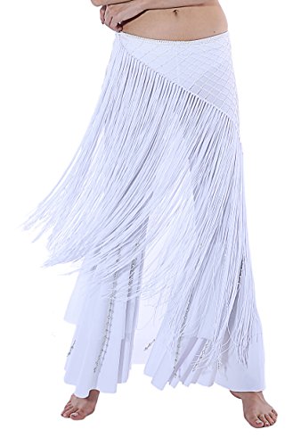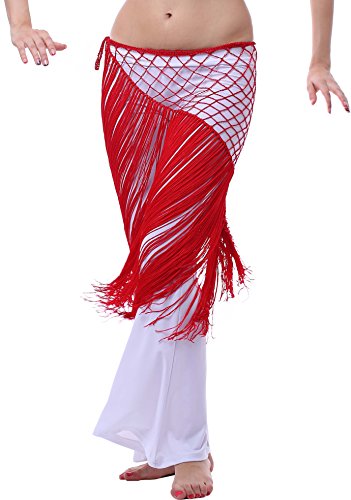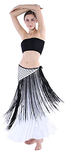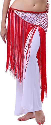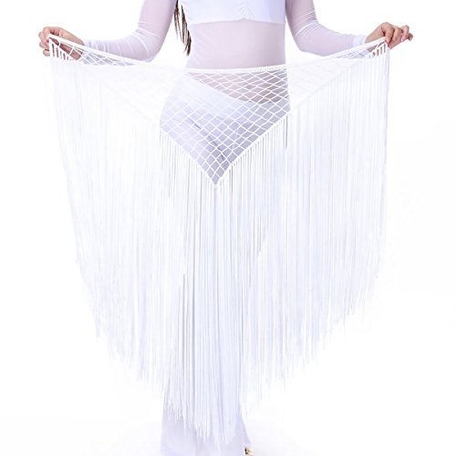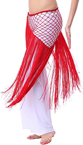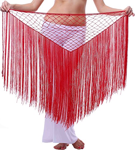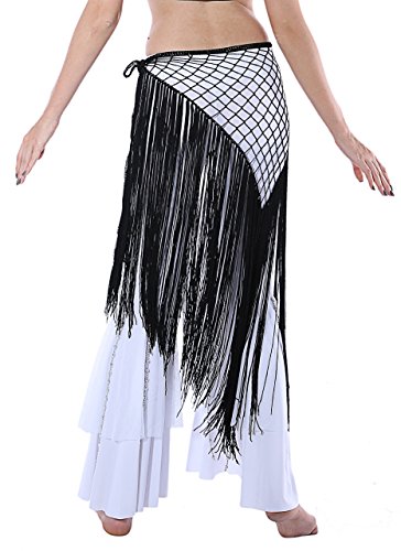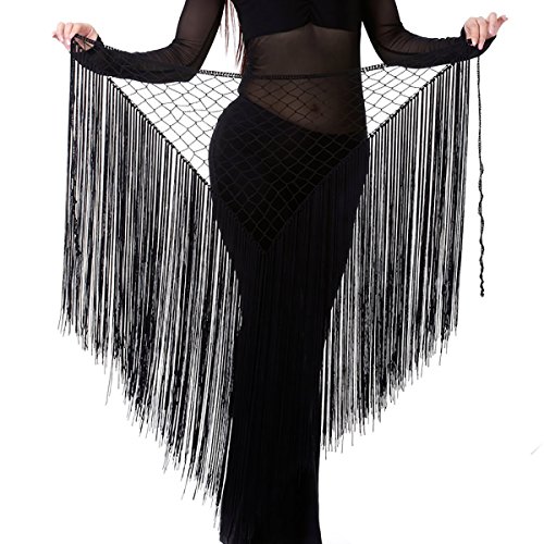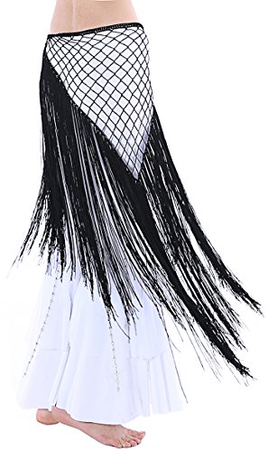 Long Net Hip Scarf for Latin or Belly Dance with Fringes and Tassels