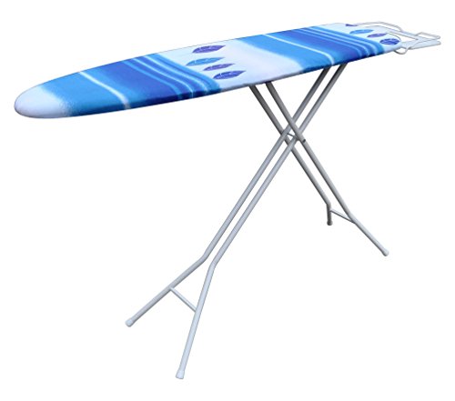 A built in iron rest with heat resistant pads is always ready to safely hold a hot iron and the attached hanger bar is available to keep those pressed lines sharp. With a 4-leg stance for maximum stability and heavy-duty no-scuff stabilizer leg caps, this board is designed to last. With its cover and pad already installed, this board is prepared to serve one or many and to do so with timeless dignity.