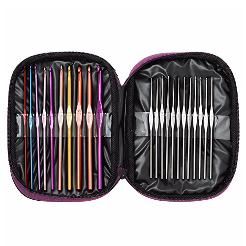 Crochet Hooks Set Mixed Aluminum Ergonomic Handle Crochet Hooks Knitting Knit Needles Weave Yarn Set for Arthritic Hands (22PCS)