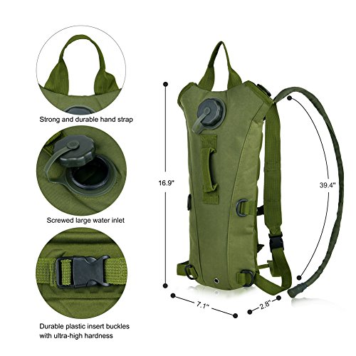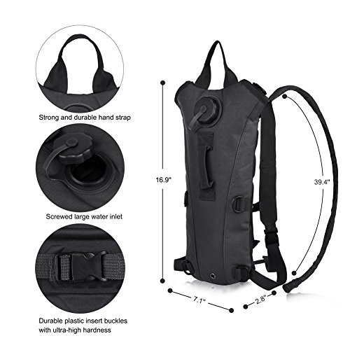 -. Brand : VBIGER -. Feature : Rugged 800D Oxford fabric and nylon lining, resistant to tears and abrasion. / Durable plastic insert buckles with ultra-high hardness. / Slender and portable design with middle handle strap and adjustable webbing chest and shoulder straps. / Hands-free hydration hose with bite valve, gently biting the valve to open up the flow of water. / With a pouch on the back, easy to carry your phone, keys and some small tools. -. IsAutographed : 0 -. IsMemorabilia : 0 -. Label : VBIGER -. Manufacturer : VBIGER -. MPN : GZRJ003 -. PackageQuantity : 1 -. PartNumber : GZRJ003 -. ProductGroup : Sports -. ProductTypeName : OUTDOOR_RECREATION_PRODUCT -. Publisher : VBIGER -. Studio : VBIGER -. Title : Vbiger Hydration Pack with 3L Bladder Water Bag Great for Hunting Climbing Running and Hiking