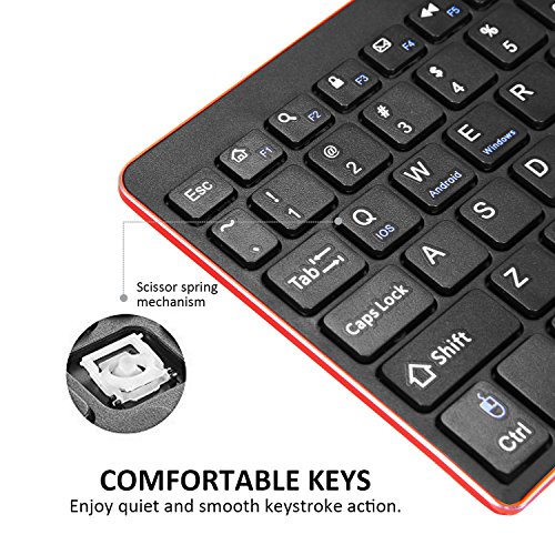 Cable-free Connection With bluetooth wireless technology, there is no messy cables anymore,providing a hassle-free wireless experience.What's more, Wireless Bluetooth QWERTY keyboard with ergonomic tilted design reduces wrist strain.