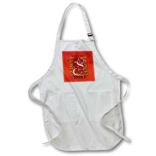3dRose apr_62905_1 Chinese New Years Year of The Snake in Traditional Chinese Full Length Apron with Pockets, 22 by 30-Inch, White