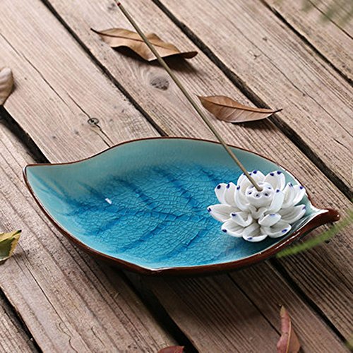 Censer Ceramic Handmade Artistic Incense Holder Burner Stick Coil Lotus Ash Catcher Buddhist Water Lily Plate Single Hole Round IN-013(Style1)