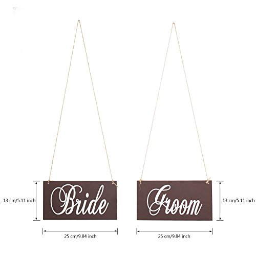 Wooden Bride and Groom Wedding Chair Decoration Sign , Wedding Photo Props, Brown, 25 x 13 cm