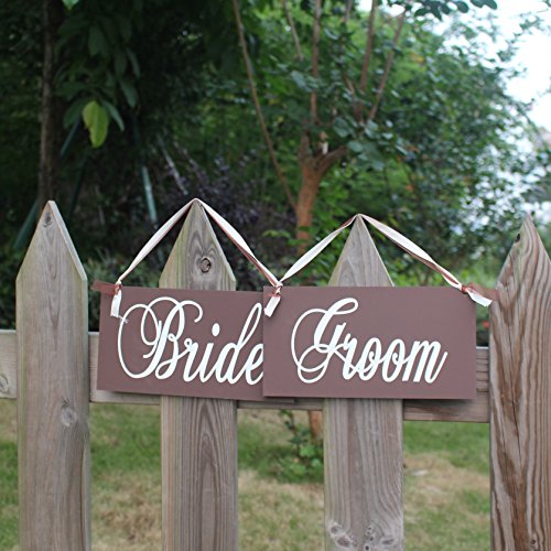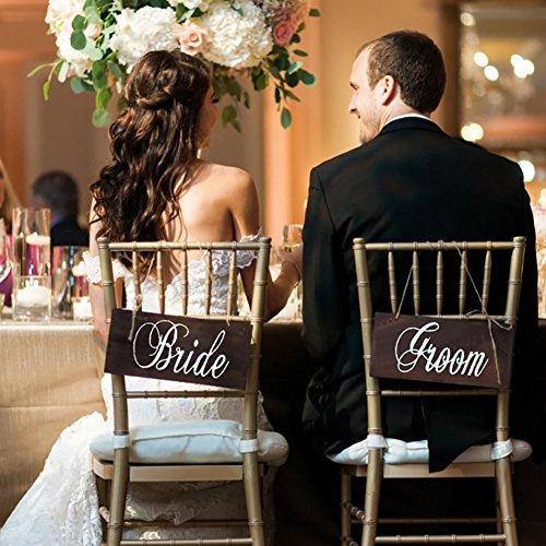 Wedding chair sign. These signs are so adorable and may be hung at the entrance of the chapel, showing the "Bride" and "Groom" seating order. The signs may be placed at the sweetheart table or hung with ribbon on the back of your chairs at your reception or special occasion.