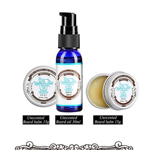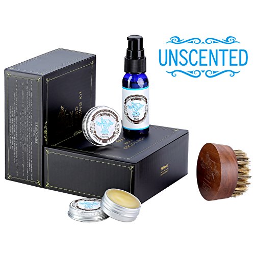 BFWood Beard Conditioner Kit -Unscented Beard Oil 30ml + Beard Balm 30g + Boar Bristles Beard Brush for Styling, Shaping, Taming, Softening, Moisturizing -...