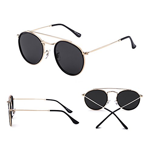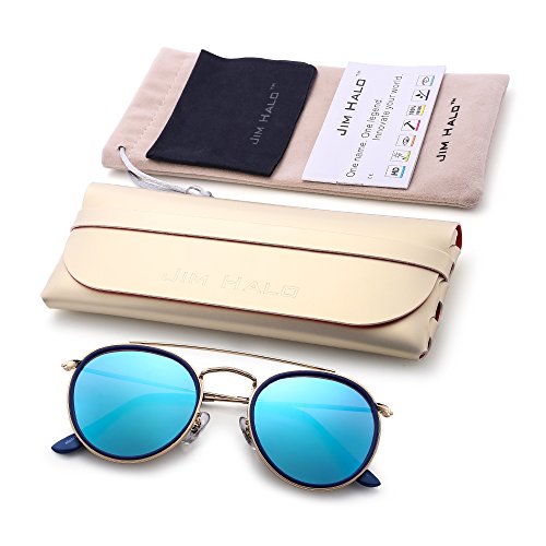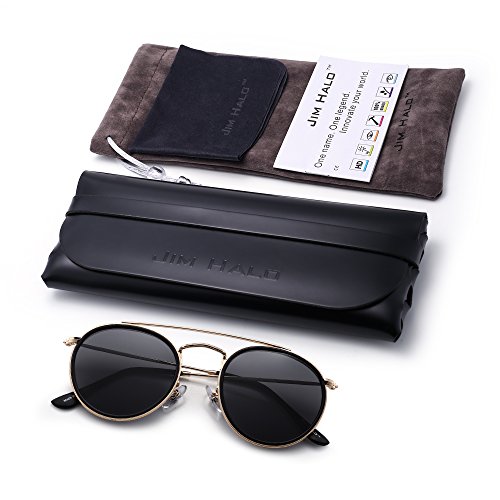 -. Brand : Jim Halo -. Department : womens -. Feature : New Release! Seasonal Hot Item! / Full metal round frame stands out with unique double bridge design / Lightweight, double rim: alloy outside + plastic inside, silicon nose pads / HD Polaroid lenses, UV400 protection / 30 Day Money Back Guarantee: All Jim Halo customers enjoy 30 Day Money Back Guarantee. Customers can return and get refunded in case the purchasing is not satisfactory for any reason -. ProductGroup : Apparel -. ProductTypeName : EYEWEAR -. Title : Round Polarized Sunglasses Metal Frame Flat Circle lens Glasses Men Women