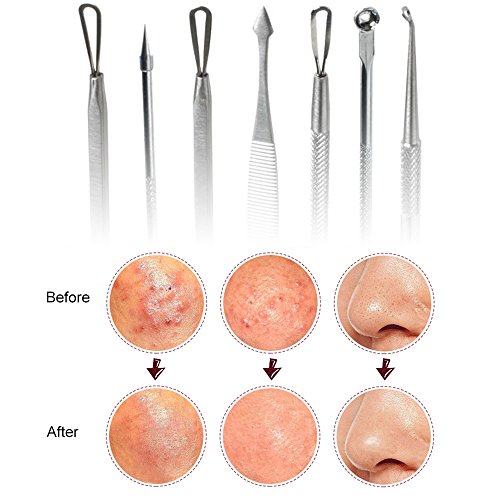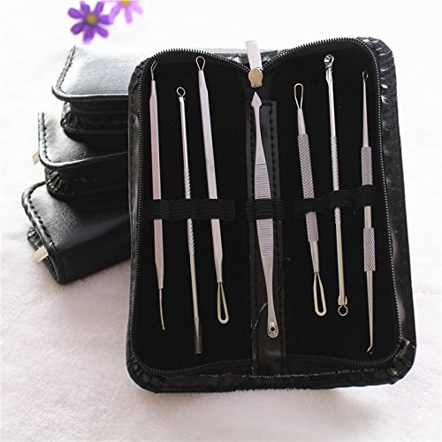 Cosprof 7Pcs Blackhead Remover Tool Kit Face Skin Care Tools Facial Comedone Acne Needle Clip Pimple Tweezer Blemish Extractor tools Set With Leather Case