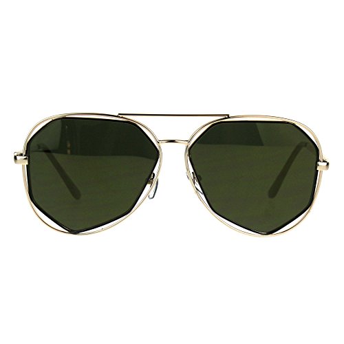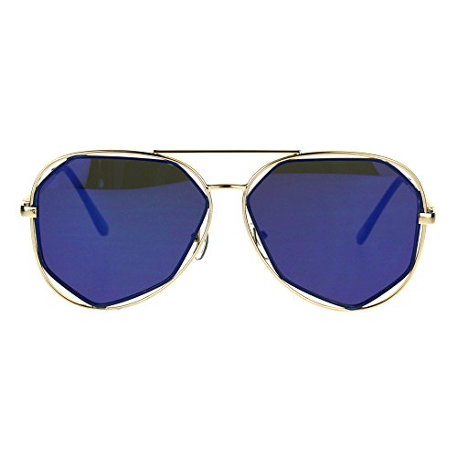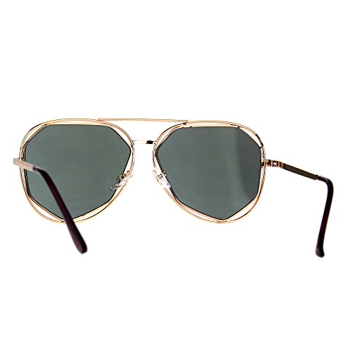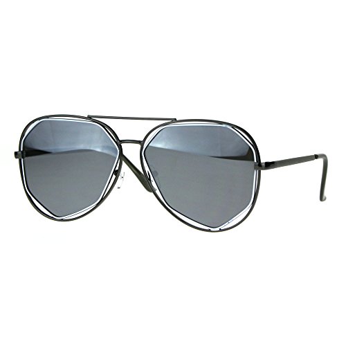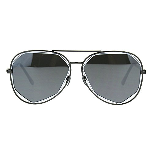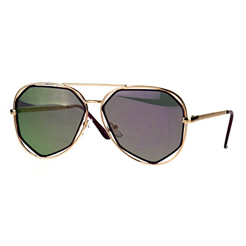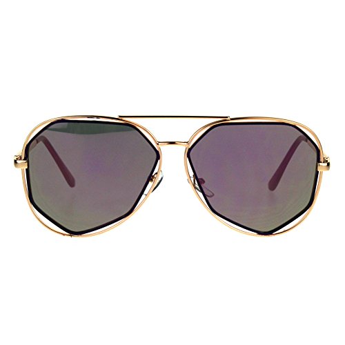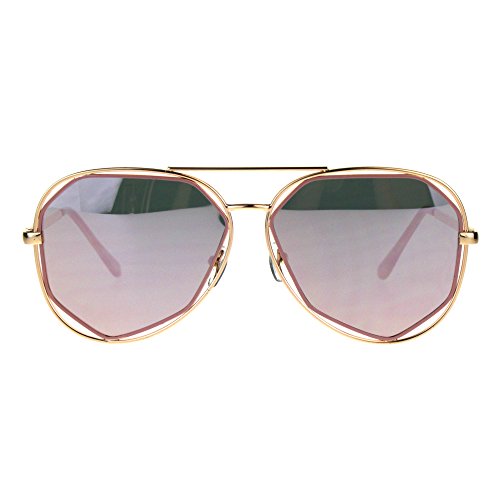 | (PASTL)/Accessories/Eyewear/DIRECT FROM USA/Womens Aviator Sunglasses Angled Double Metal Frame Mirror Lens |