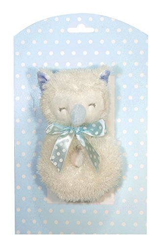 STEPHAN BABY SLEEPY OWL CUDDLE SOFT PLUSH RING RATTLE, BLUE