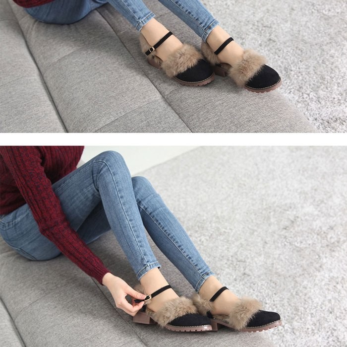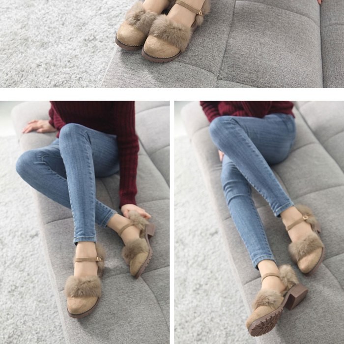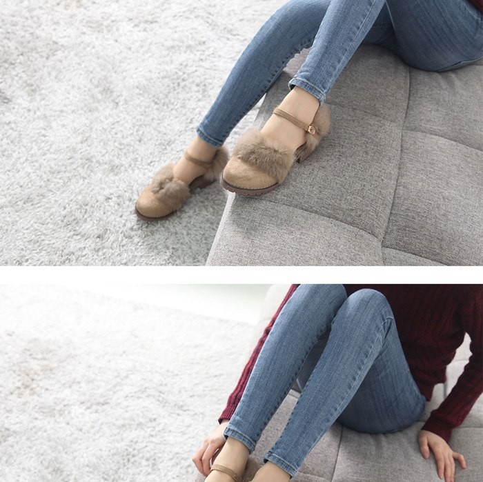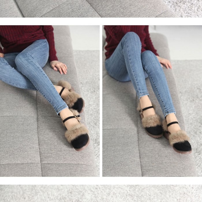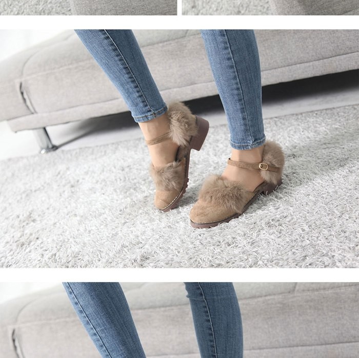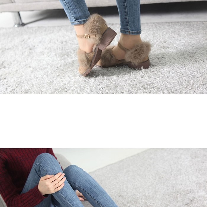 商品名:サンダル レディース ローヒール フェイクファー スエード調 サイドオープン 2017 秋冬 ファッション 靴 婦人靴