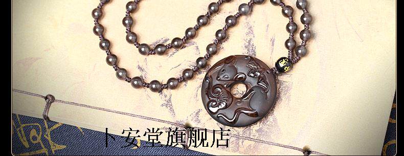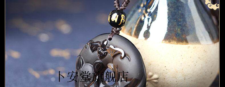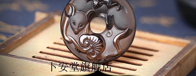 开光犀亥拱珠冰种黑曜石吊坠生肖鼠开运吉祥物男女款