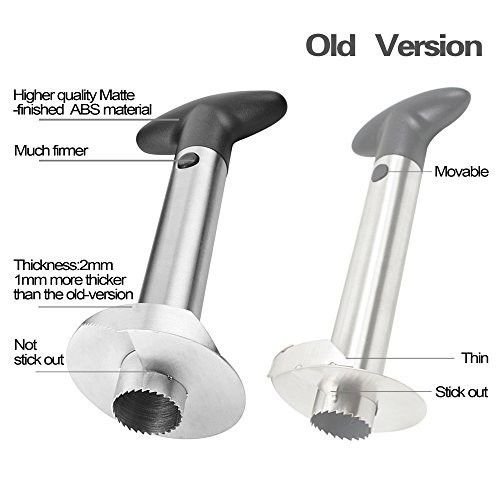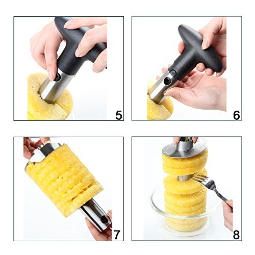 - 100% LIFETIME GUARANTY : 100% Satisfaction with no questions asked. We will fully refund if you received the pineapple corer broken, rust or any problems. OUR ADVANTAGES (Please find the left picture) : High quality ABS handle, well welded spots on the cutters ( not stick out) , more flexible button on the handle , these are important things that need your attention when buying a peeler.