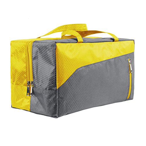 100% brand new and high quality; Made of polyester and plastic / 100% waterproof; separate the dry and wet spaces, keep your things more safe / Solid bag with big volume, you can put towel, swimsuit/swimwear, slippers in the wet pocket, and phone, wallet in the dry pocket / 3-layer isolation design to separate your things, and double zippers keep you things safe / Suitable for adults and kids when go to the beach or swimming pool, or you can carry it as a travel bag