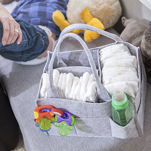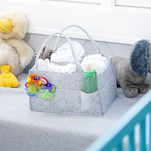 - STURDY FABRIC CONSTRUCTION: Whether you need a car or nursery tote for toys or a changing table organizer, our big 13 x 9 x 7 in caddy, made of lightweight, washable felt, will hold up wherever you go