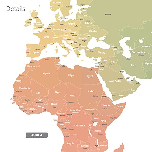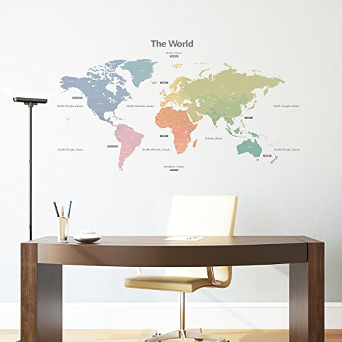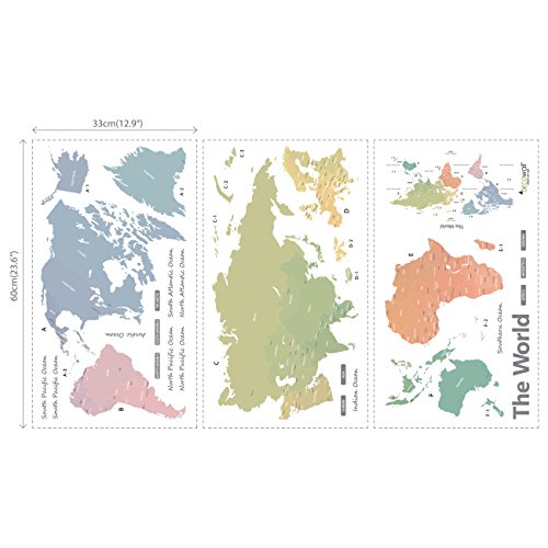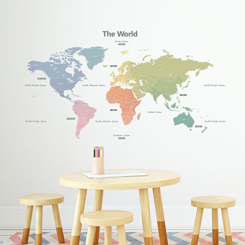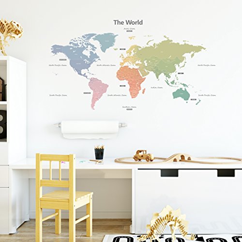 Decowall DMT-1809S Modern Pastel Tones World Map Kids Wall Stickers Wall Decals Peel and Stick Removable Wall Stickers for Kids Nursery Bedroom Living Room (Large)