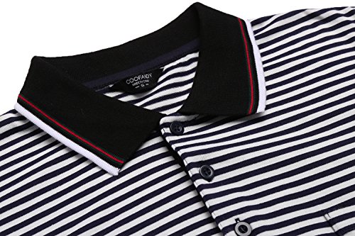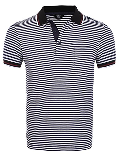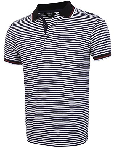 쿠우(Qoo) 파운데이션《》 (쿠우(Qoo) 파운데이션)Coofandy 폴로 셔츠 맨즈 반소매 보더 골프 웨어 스포츠 환기속 건쾌적 캐주얼 일 피트 슬림 가슴 포켓 부착 촉감 좋 검정 블루 S~XXL
