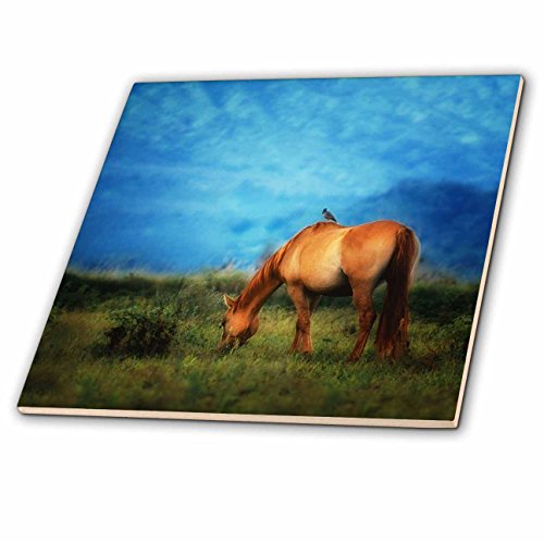 3dRose ct_164708_2 Young Stallion with Bird in Kauai, Hawaii-Ceramic Tile, 6-Inch