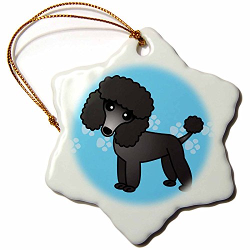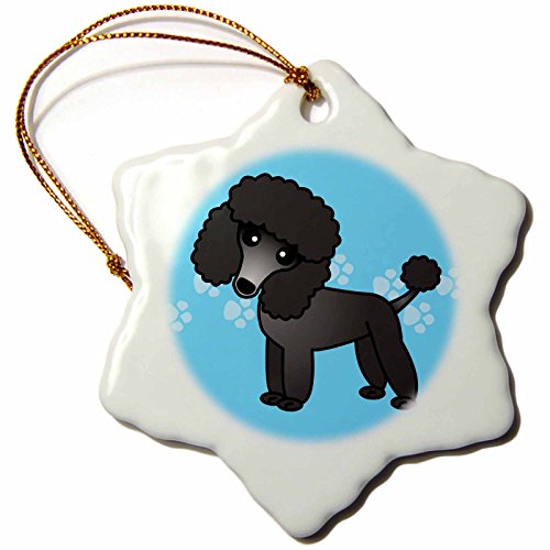 3dRose orn_13763_1 Cute Black Poodle Blue Paw Print Background-Snowflake Ornament, Porcelain, 3-Inch