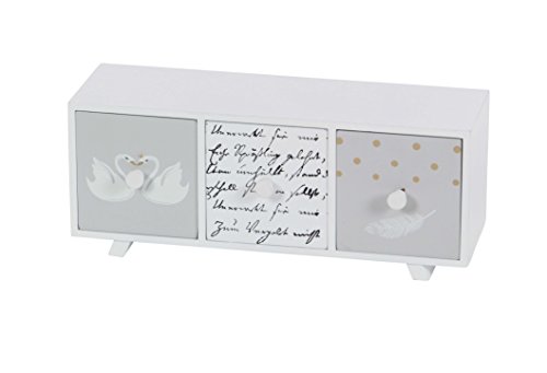 Deco 79 98769 White Three-Drawer Wooden Jewelry Chest, White/Gray/Black