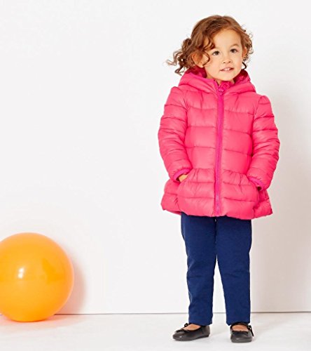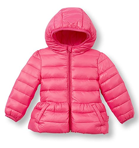 Keep your little girl cozy all season in this stylish down jacket by Le Top. The deep pink quilted jacket has a zip front, two welt side pockets, and an attached hood. Made from 100% nylon with a down fill. Perfect for keeping her warm all season.Feature