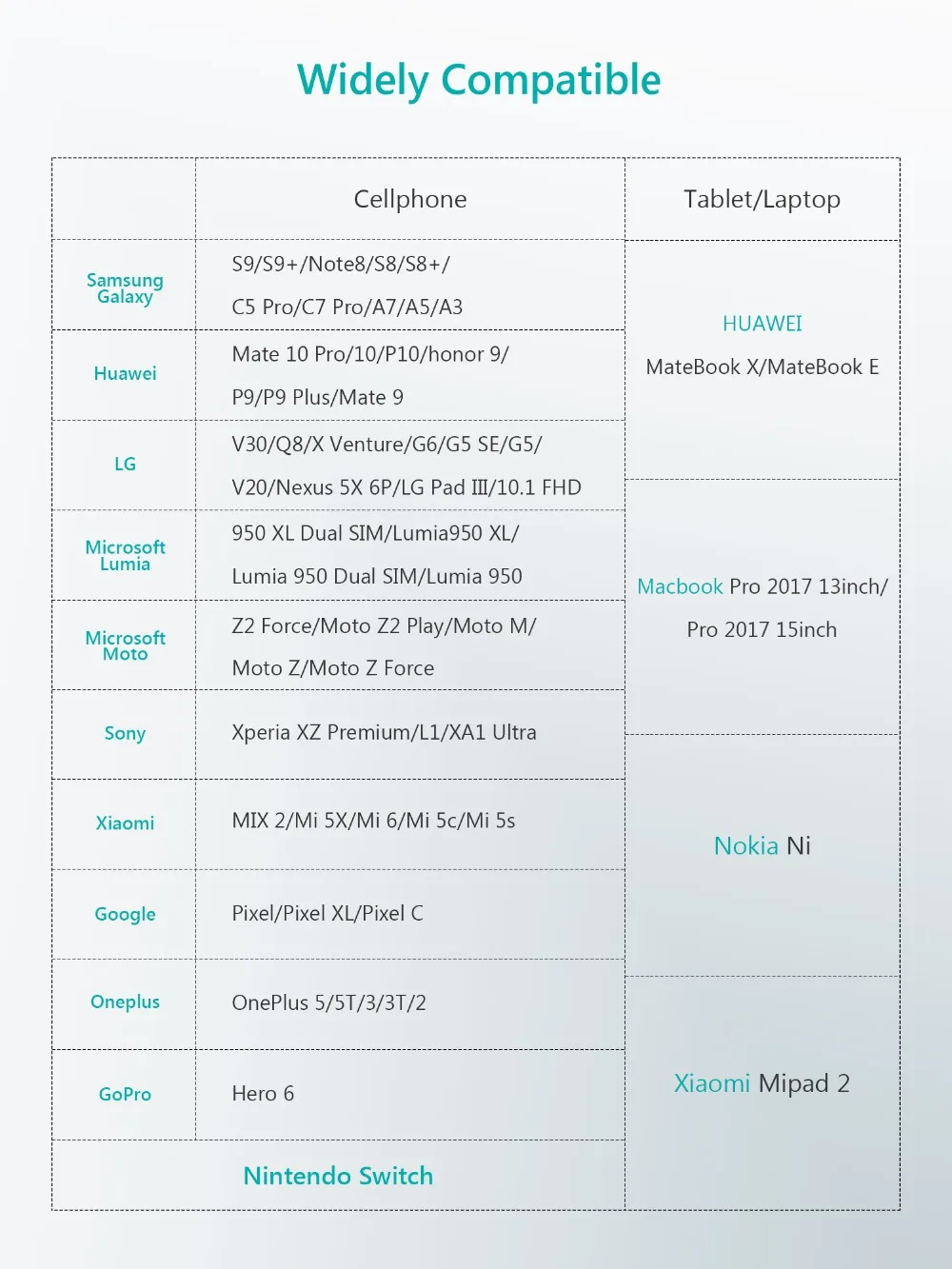 Compatible Brand:Blackberry,HTC,Samsung,SONY,LG,Nokia,Motorola