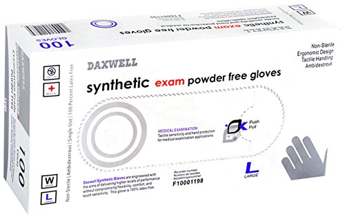 Daxwell Synthetic Exam Gloves, Powder Free, Large, White (Box of 100 Gloves)