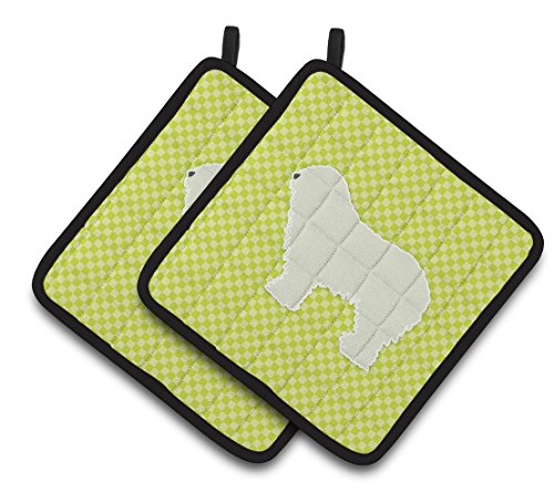 Caroline's Treasures Komondor Checkerboard green Pair of Pot Holders BB3855PTHD, 7.5HX7.5W, Multicolor