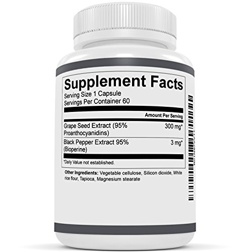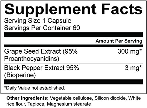ANTIOXIDANT SUPPORT - Our natural Grape Seed Extract 300mg supplement contains over 95% Polyphenols, the beneficial antioxidant compounds found in grape seeds. Our supplement contains oligomeric proanthocyanidin complexes (OPC) which are well known for their antioxidant activity.