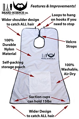 Studio : Beard Science Publisher : Beard Science Binding : Misc. Product Description Beard Science Beard Bib allows for QUICK CLEAN UP and NO MESS when trimming your beard. Use the beard apron to catch beard trimmings and easily dump them in the trash. Make your woman happy by leaving no hairy mess in the bathroom. The Beard Science Beard Bib features a built-in storage pouch! Perfect for on-the-go travel. BONUS! WOOD BEARD COMB INCLUDED! Use the comb to help trim your beard or help tame the beard while out on the town. The Beard Science Beard Bib features high quality materials and super strong suction cups. Simply attach the apron around your neck, attach suction cups to the mirror, trim beard, and gently shake trimmings into the trash. IT'S THAT SIMPLE! 0