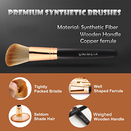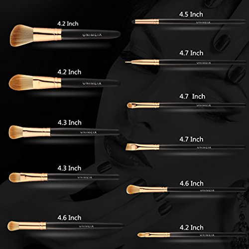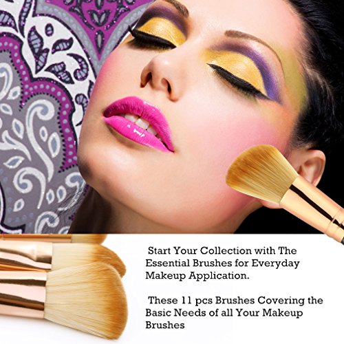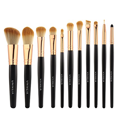 UNIMEIX 11 Pieces Makeup brushes Set Pro Synthetic Makeup Brush Contour Foundation Blending Eyeliner Eyeshadow Sponge Cosmetic Kits (Gold)