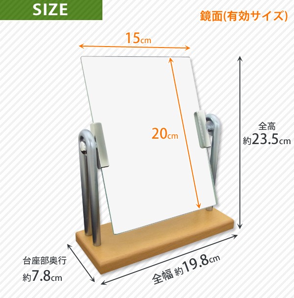 | サイズ | 外寸:約19.8×23.5×7.8cm 鏡面(有効サイズ):15×20cm 個装サイズ:21×26×10cm |