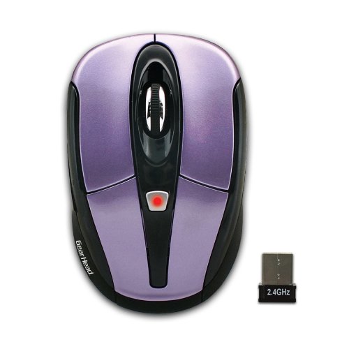 Gear Head MP2950PUR Optical Wireless Mouse Bring your computer system up-to-date with the Gear Head MP2950PUR Optical Wireless Mouse. Featuring 2.4GHz wireless connectivity, the Gear Head MP2950PUR Optical Wireless Mouse is just what you need for reliable, steady performance and no-nonsense functionality. With Automatic Wireless Synchronization, you simply connect it and can instantly start working on your computing tasks and documents. The Gear Head MP2950PUR Optical Wireless Mouse comes with a Nano Receiver and alerts you when you need to set your mouse to recharge thanks to the low battery indicator. Plus, the Gear Head MP2950PUR Optical Wireless Mouse is compatible with both PC and Mac - all you need is an available USB port and you're ready to go! Get the Gear Head MP2950PUR Optical Wireless Mouse today and notice the convenience it brings! What It Is and Why You Need It: Works up to 30 feet away with 2.4GHz wireless connectivity Features scalable DPI switch and Low Battery Indicator Both PC and Mac compatible Specifications Gear Head MP2950PUR Optical Wireless Mouse Device Type: Mouse Connection Type: Wireless Tracking Method: Optical Vertical Scroll: Yes