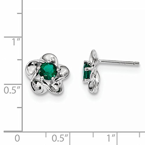 ICECARATS DESIGNER JEWELRY 925 STERLING SILVER FLORAL CREATED GREEN EMERALD POST STUD EARRINGS