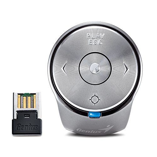 * Cutting-edge ring style touch presenter * Hardware control mode switch for Presenter and in-air mouse * Laser pointer function * Natural rubber ring for comfort and finger grip * On-Screen-Display for processing action Ring Presenter is a cutting-edge technology innovation, powered by the slimmest Li-ion rechargeable battery design to protect the environment while you enjoy the fun you always wanted. Also the smart battery-low detector flashes in blue when it is time to recharge. The Ring Presenter worry-free 2.4GHz technology provides a reliable working performance and the laser pointer can work at a distance up to 10 meters. * Interface support: USB * Number of buttons: Five buttons * Resolution (dpi): 1250 dpi * Battery: Li-ion rechargeable * Dimension: 25 x 35 x 33mm * Weight: 9g (Ring); 2g (Receiver)Feature