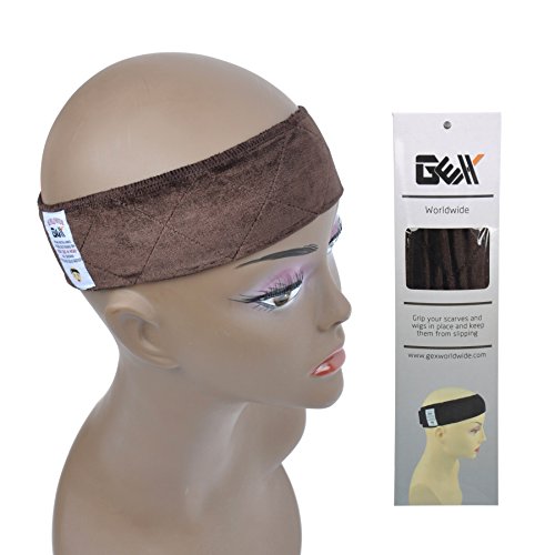 GEX Beauty Flexible Velvet Wig Grip Scarf Head Hair Band Wig Band Adjustable Fastern (Brown)