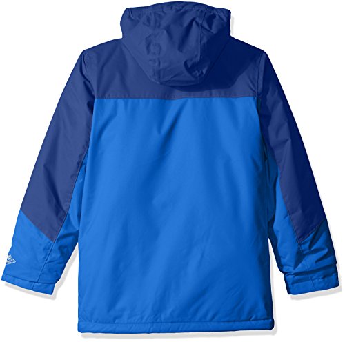 The boys' Double Grabâ"¢ Jacket has the lightweight weatherproof performance and low-loft insulation to keep him on the snowboard practicing his nose grabs and rail grinds until the last lift. Regular Fit is an easy, lightly relaxed fit for comfortable range of motion. Omni-Techâ"¢ shell:• Two-layer design with plainweave outer and waterproof membrane.• Waterproof, windproof and critically seam-sealed protection.• Breathable design allows passage of moisture-vapor from perspiration. Microtemp XF II insulation:• Polyfill insulation offers warmth without excessive bulk.• Crimped design increases surface area for improved warmth retention.• 100 g/m² fabric weight. Omni-Shieldâ"¢ lining:• Dries several times faster than traditional fabric.• Retains less moisture than conventional material to stay lighter even when wet. OUTGROWNâ"¢ grow system extends sleeves for cross-season wear. Attached storm hood with elastic binding and adjustable, hook-and-loop back. Front zip with inner draft flap and zipper garage. Long sleeves. Hook-and-loop tab cuffs. Zip chest pocket. Zip hand pockets. Inner mesh goggle pocket. Snap-back powder skirt with silicone-taped elastic binding. Straight hem. Reflective taping improves low-light visibility. Body: 100% polyester;Insulation: 100% polyester;Lining: 100% nylon. Machine wash and tumble dry.Feature