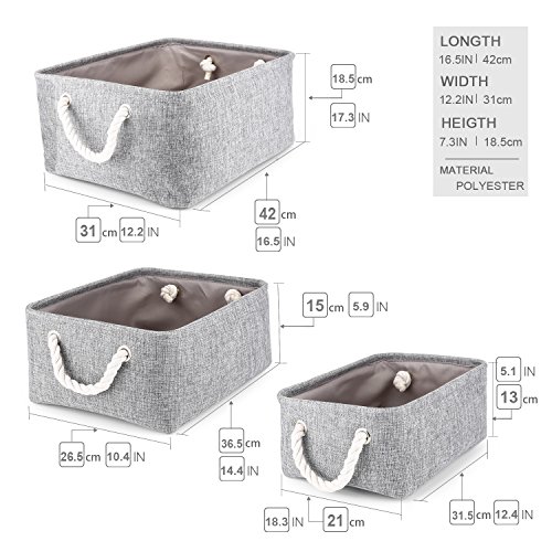 Solid Construction Made from high quality Linen and have thick rope handles for easy transport. Every storage container is equipped with two knotted cotton rope handles. These sturdy thick rope handles are designed to give you optimal tension and comfort while transporting. The material and construction offers a long lasting basket that you can use over and over again.