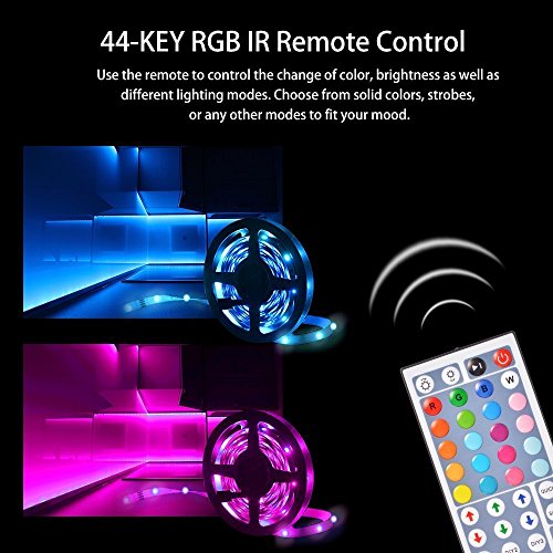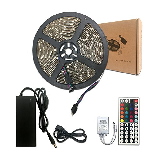 RP 2018 LED Strip Light Kit, 16.4ft 300LEDs Water-resistant Flexible Multicolor 5050 RGB Lighting, 12V5A Power Adapter, 44 Key Remote Control. For Indoor/Outdoor/Holiday/Home/Store/Party Decoration