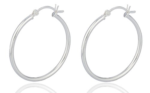 925 Sterling Silver 3mm 2 Inch Basic Hoop Earrings..