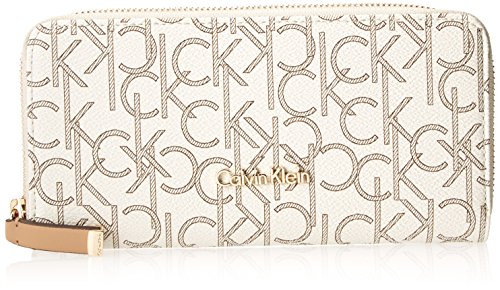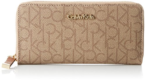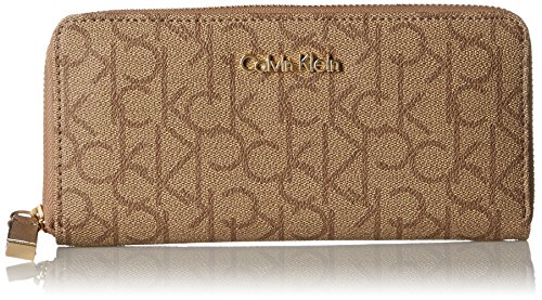 Organization with elegance. This luxe lovely from Calvin Klein will keep your credentials in signature style. Outfitted with the iconic CK monogram, it flaunts multiple pockets and compartments for effortless go-everywhere accessorizing. Faux leather; trim: leather Zip around closure Gold-tone hardwre; back slip pocket; signature plaque at front Interior features middle zip compartment, 2 billfolds and 8 card slots 8" W x 4" H x 1" DFeature