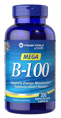 -. Title : Vitamin World Mega B-100 Supports Energy Metabolism Supports Heart Health 200 Rapid Release Capsules