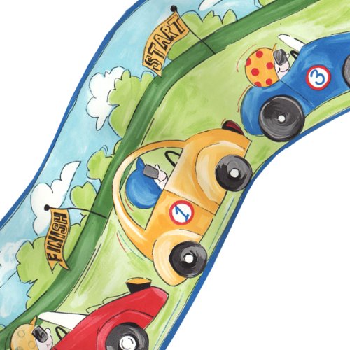 [Product Information]- One Curvy Race Cars prepasted wall border measuring 7.5 inches x 5 yards.