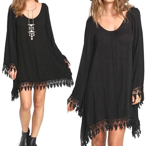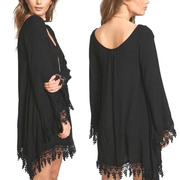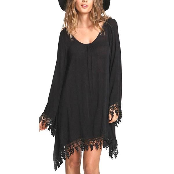 | 裾アシンメトリー レース シフォン ワンピース ミニ丈 長袖 黒 ブラック 無地 【レース ワンピース フレアワンピース レディース 女性 ロンデルブラック ワンピース ボヘミアン ミニ丈 ロンデルブラック one-piece 】 | |